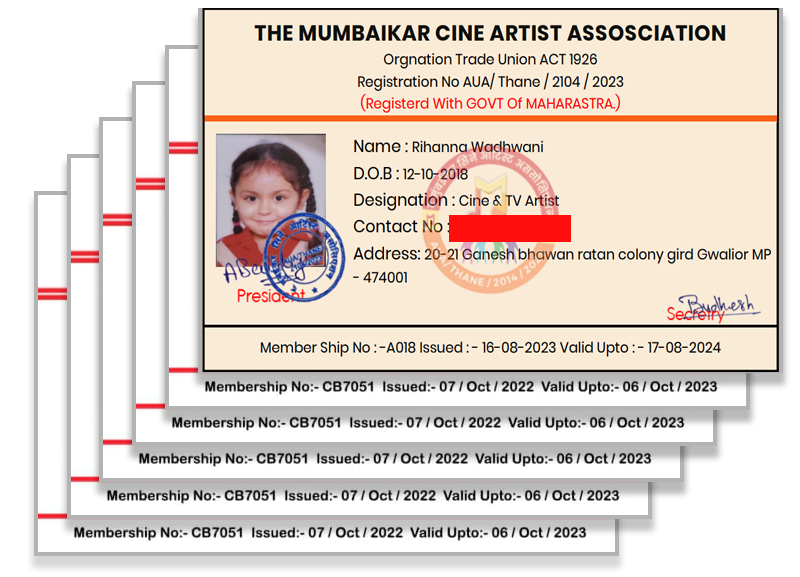 (Regd.no.: AUA/THANE/2014/2023 Under Trade Union Act,1926 with Government of India ) From just a daily wage earner or laborer or junior artist to a groundbreaking Bollywood actor, no matter what kind of job you want from the Cine industry, you need to have an artist card for safeguarding your security. The Mumbaikar Cine Artist Assosciation